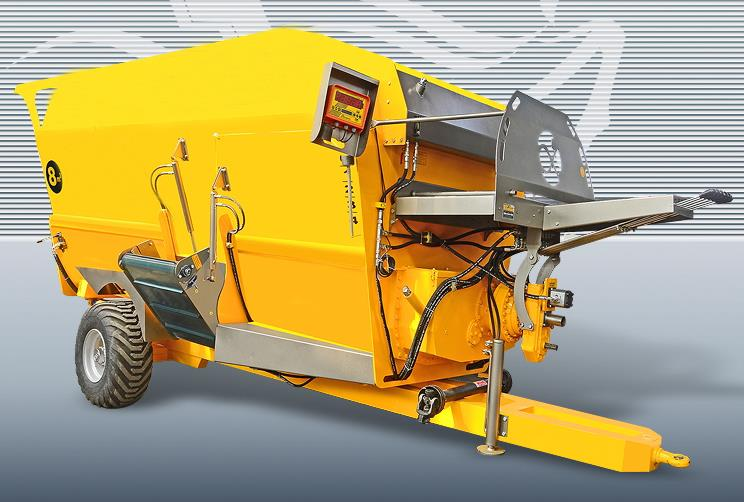 8 kubmetrlik üfüqi tipli yem qarışdırma və paylama texnikası kiçikdən orta ölçülü heyvandarlıq təsərrüfatları üçün ideal seçimdir. Silos, ot, saman, qarğıdalı və digər yem komponentlərini bərabər şəkildə qarışdıraraq heyvanlara homogen şəkildə paylayır. Üfüqi qarışdırma sistemi yemlərin strukturlarını qoruyaraq qida dəyərinin saxlanmasını təmin edir. Traktorun PTO (güc çıxışı) vasitəsilə işləyən bu qurğu gündəlik yemləmə işlərini sürətli və effektiv şəkildə həyata keçirir.